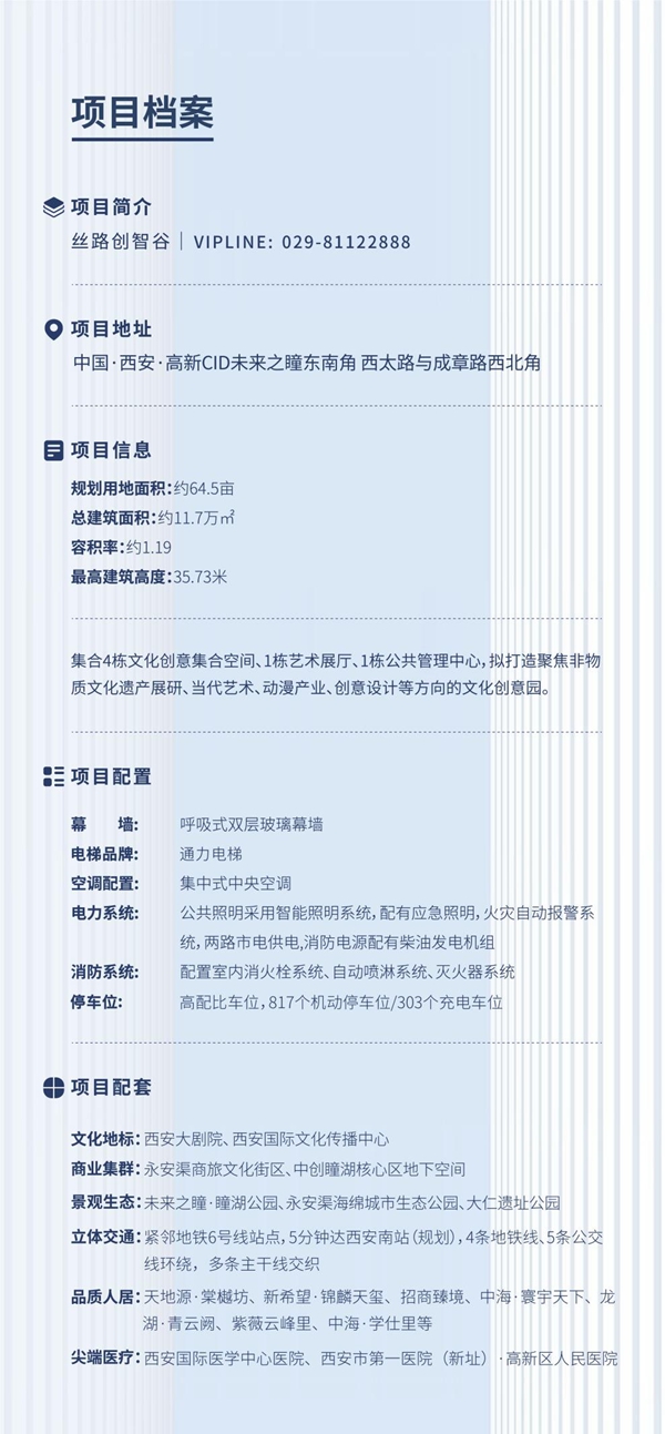 丝路创智谷位于中央创新区核心地段,是高新区以“四个高新”跨入“高新3.0时代”的极具标志性的文化创意园地标,同时三大城市地标环伺:商业地标——永安渠商旅文化街区、商务地标——未来之瞳超高层商务集群、文化地标——西安大剧院。资源汇聚将为入驻企业带来强劲人才吸附力,为区域文化、创意发展注入强大动能。