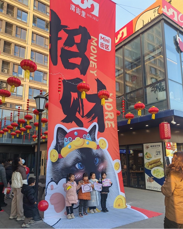 幸福烟火气,尽在渭街里。2025蛇年春节临近,渭街里mini街区满是喜庆,一抹抹红色扮靓了整个冬日街区。“新春蛇”“招财猫”“草滩牛”等系列年味IP吸引了众多市民朋友前来打卡。