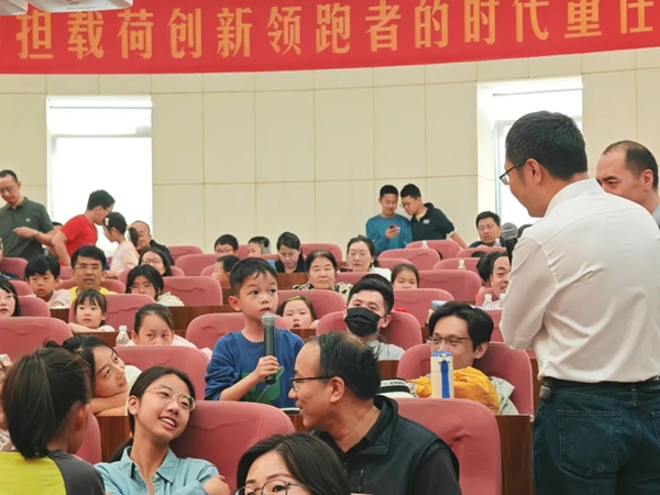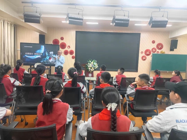 在航天科普讲座现场,科普专家于晓乐以通俗易懂的语言,从东方红一号卫星的研制故事讲起,深入浅出地讲解了航天科普知识和航天精神,激发大家对航天科技的兴趣与热爱。
