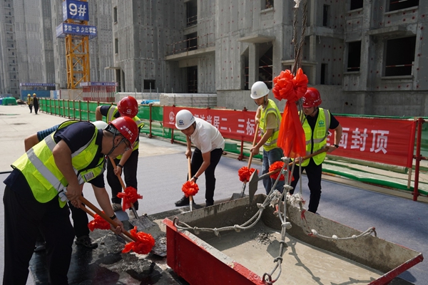 站在封顶的屋面,该项目总经理周星宇团队表示,将在沣东新城管委会领导下,秉持中国中铁“创造、质量、品牌”的核心价值观,以更高标准、更实作风,严守安全、质量、进度关口,打造安全、舒适、绿色、智慧的“好房子”,践行“保交楼、稳民生”央企责任,助力沣东回迁居民早迁新居。