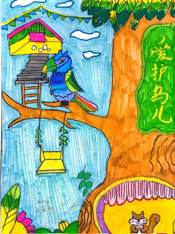 此外,经开二小还组织了以“我心中的鸟儿乐园”为主题的征文比赛和“蓝天精灵的微笑”绘画比赛。孩子们纷纷拿起笔,用充满童真和想象力的文字描绘心中人鸟和谐共生的美好愿景,用五彩斑斓的画笔勾勒出鸟儿自由翱翔的灵动姿态。一篇篇真挚感人的文章,一幅幅充满生命力的画作,不仅是艺术才华的展现,更是孩子们对大自然、对鸟类朋友真挚情感的流露和守护承诺的表达。