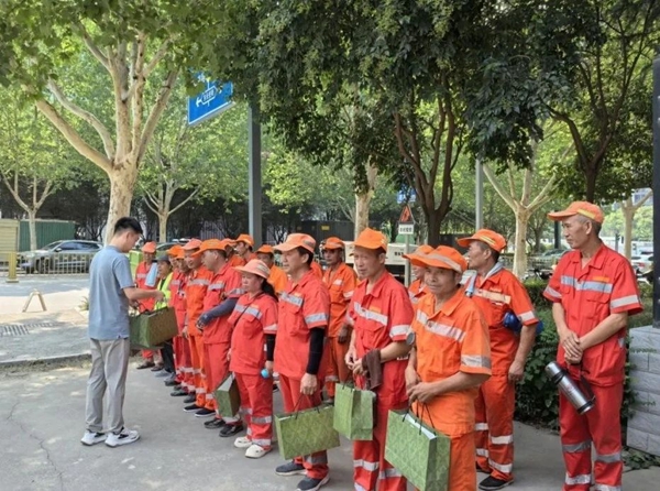 活动现场,工作人员早早准备好了装满心意的清凉礼包,里面整齐地摆放着菊花茶、金银花、冰糖等防暑降温物品。这些物品能帮助环卫工人缓解夏日的燥热,还寄托了社区与企业对他们辛勤付出的一份肯定。