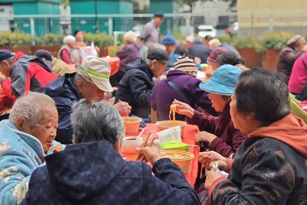 活动现场,“百位老人重阳欢聚宴”热闹开席。社区工作人员与志愿者早早忙碌起来,摆放桌椅、准备碗筷,热气腾腾的长寿面陆续端上餐桌。百位老人欢聚一堂,品着鲜香的面条,拉着家常,分享生活趣事。社区工作人员穿梭在餐桌之间,主动与老人们亲切交谈,关切询问大家的身体状况、生活需求,倾听老人们的心声与建议。邻里情谊在闲谈中悄然升温,社区与居民的心也贴得更近,彼此的情感联结愈发紧密。