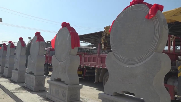 近日,六面镌刻着《十样景》完整鼓谱与配套图画的青石石鼓,在西安市鄠邑区甘亭街道孝义坊村文化广场正式安装落成。鼓身浮雕的"鹦哥上架""狮子滚绣球""凤凰单展翅"等十种鼓点图谱栩栩如生,图文并茂的呈现方式让千年鼓谱有了具象载体,引得村民纷纷驻足观赏、热议称赞。