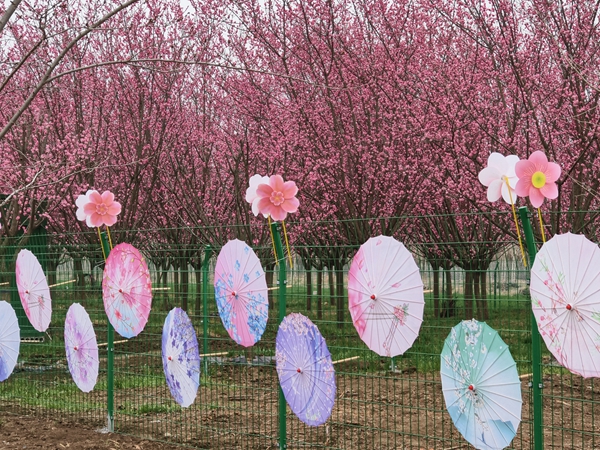 今年由于天气晴好,温度偏高,梅花较往年提前盛开,来这里赏梅的游客日均量达1万多人。本次梅花最佳观赏期为2月下旬至3月中旬,此外园区内相继还有垂枝樱花、海棠等花卉陆续盛开。丁村樱花园负责人查康告诉记者,“园区内还设置观景平台、儿童游乐设施、餐饮、休息座椅等供游客体验。市民游客可导航‘丁村樱花园︐赴一场浪漫的春日梅花之约。”