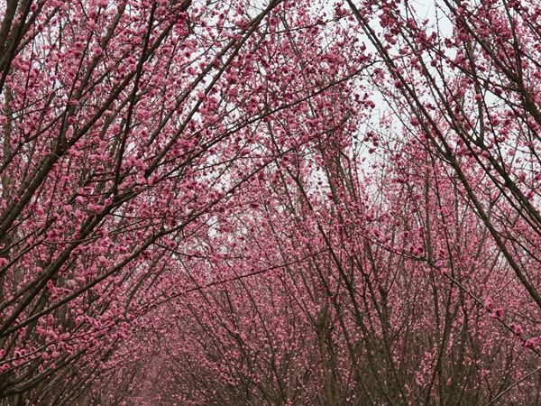 据了解,鄠邑区甘河街道丁村的樱花园占地600余亩,园内以樱花树、梅花树、海棠树、银杏树为主,其中梅花园区占地140余亩,以杏梅和垂梅为主。
