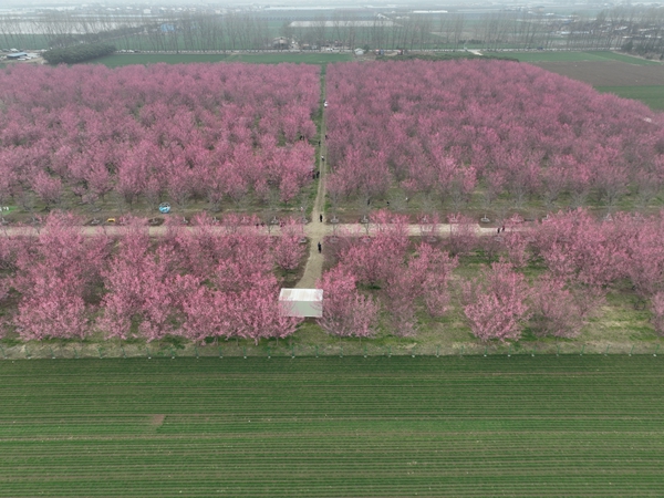 满园春色关不住,万花齐放迎春来。近日,位于西安市鄠邑区甘河街道丁村的樱花园内,万余株梅花竞相绽放,连片花海如云似霞,暗香浮动,吸引众多游客踏春赏花,尽享田园春色。