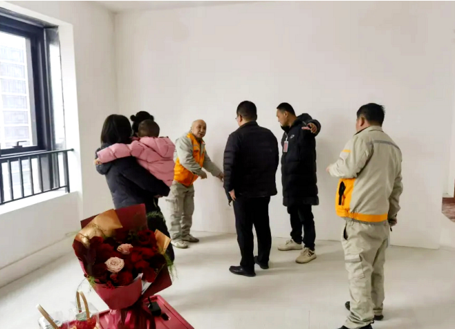 交付现场,各项流程井然有序。从签到、资料审核到手续办理、物品交接,各环节分工明确、衔接流畅,实现“即来即办”的便捷体验。在验房环节,由置业顾问、专业工程师及物业维修人员组成的验房团队全程陪同,对房屋的墙面、地面、门窗及水电管线等部位进行细致查验与现场测试,耐心解答业主疑问,及时跟进反馈,确保每一位业主都能安心入住。