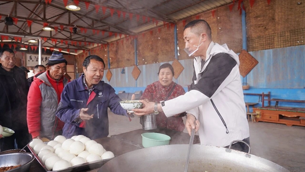这个朴实的念头,促使他做出了一个决定,为村里有需要的留守老人办一个“爱心餐厅”。餐厅自营业以来,平均每天来吃饭的有四五十人,最多时也有过二百多人。一顿午饭定价3元,不限量、随便吃,环卫工人免费。