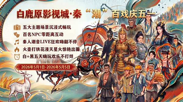 这个五一,来白鹿原影视城,赴一场穿越千年的秦风之约,在鼓乐与烟火间,感受关中大地的文化底蕴与时代活力。